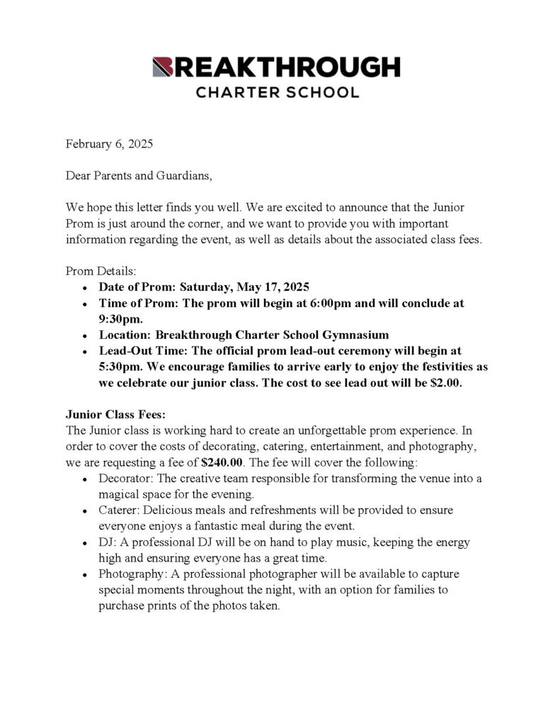 As I am sure you are aware that the school sent home a letter to all the 11th grade students attempting to force all the Junior class to pay for prom even if they were not planning to attend. This outrageous FEE of $240 per student makes you wonder what your child is getting for this amount. It must be through the roof.. Right. Well it is not! it is over priced due to a failure on the part of the school administration who failed to plan adequately. The Prom committee consists of a undetermined number students and faculty, led by one person who has apparently made most of the choices. The “One” chose the following items.